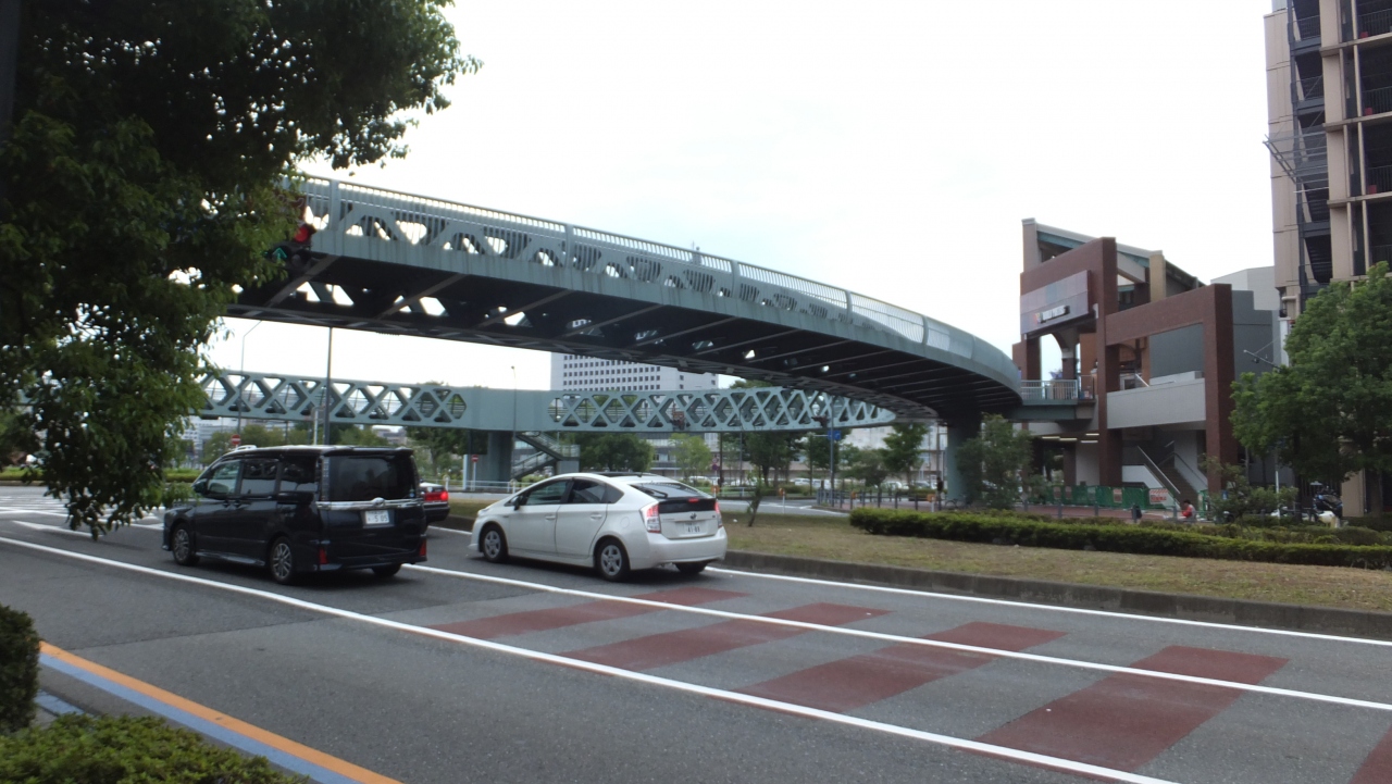 国際大通りと万国橋通りの交差点に架けられた楕円形の歩道橋で、橋長は、約225?もあります。「汽車道」から続く開港の道プロムナードのルートの一つで、この橋を渡れば赤レンガパークにいくことが出来ます。