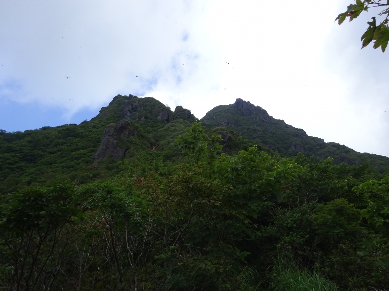日向越を経て森林浴を楽しみながら高度を上げてきます。やがてジグザグの道が始まり、道をつめていくとだんだん木も低くなってきます。よく晴れとても暑い日だったので、森林の蔭の道は助かりました。
