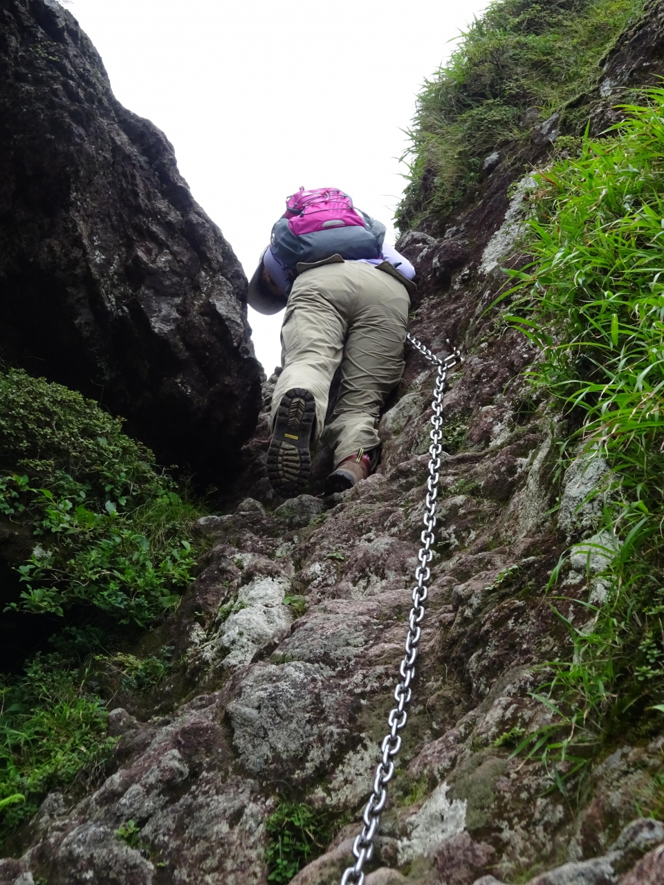 ジグザグ道の終わりから展望が開けてきますが、道も険しくなり、鎖場などもあります。この辺になると結構涼しいです。火口縁近くになるとショウロウトンボがたくさん飛んでいました。