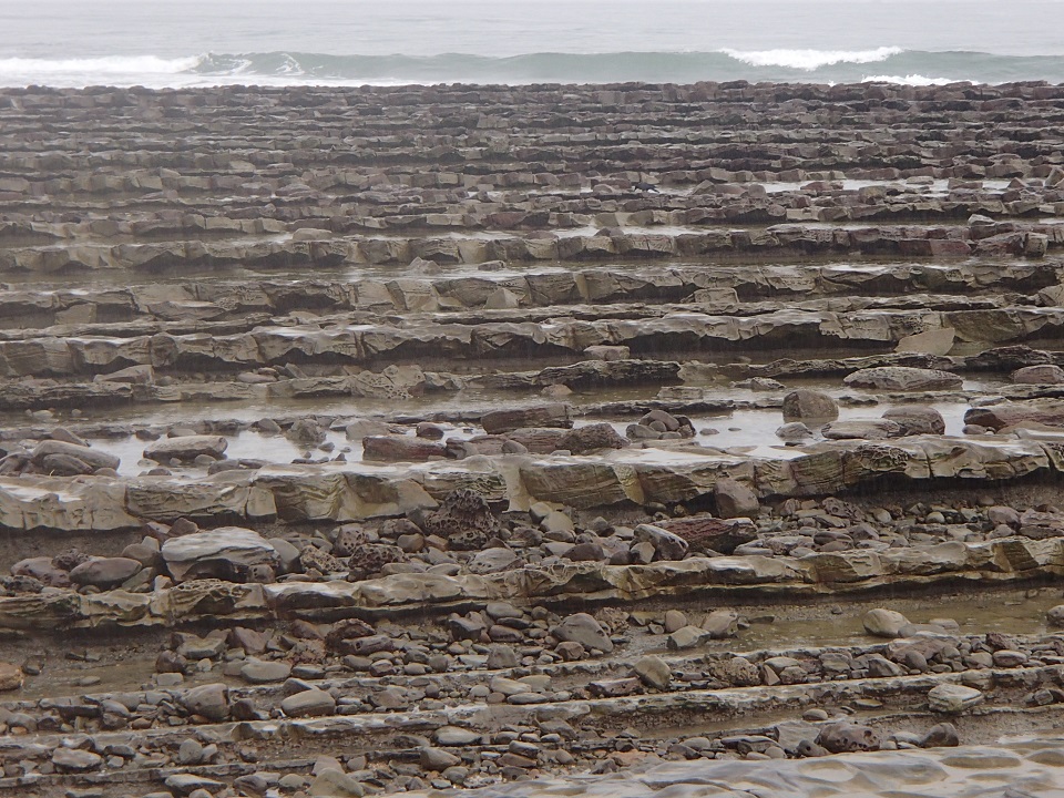 太平洋の荒い波の打ち寄せる海岸にまさに洗濯板のように凹凸のある岩盤が広がっておりました。