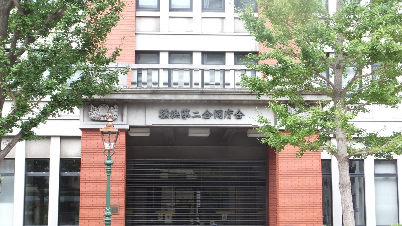 「横浜第2合同庁舎」ということで現役の施設ですが、前の低層階の赤レンガの建物は、旧・横浜生糸検査所で、1926年に竣工され、横浜市認定歴史的建造物に認定されています。すぐ後ろには、23階建ての建物があります。