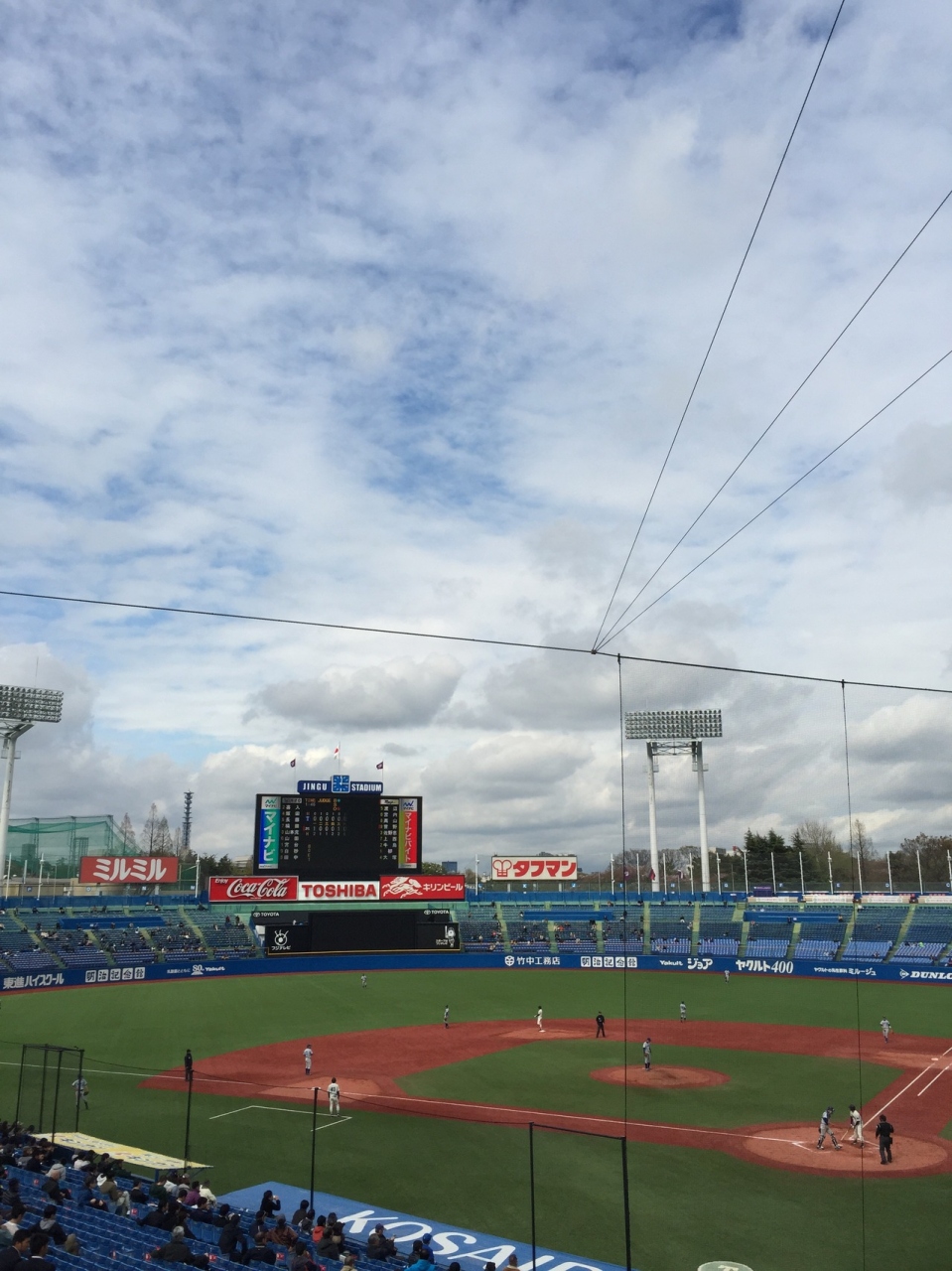 東京の球場と言えば神宮球場。初めて行ったのは自分の高校の応援。一回戦から神宮でした。それ以降、プロ野球にはまってからも夜の風とビールの組み合わせで一番好きな球場になっていましたが初めて六大学に参戦。プロとは違う熱気もまた新鮮です