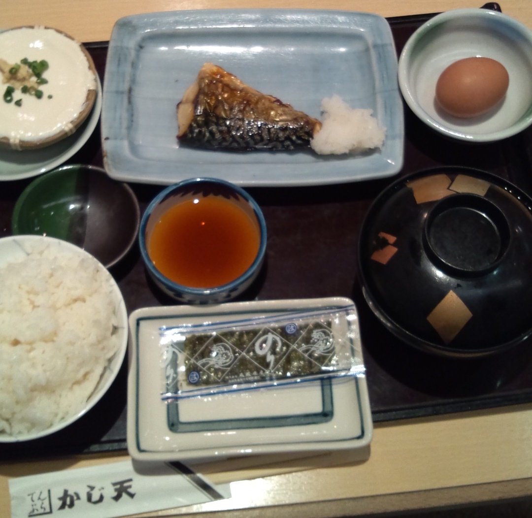 ご飯、豆腐、鯖の塩焼き、生卵、味噌汁でしたが、鯖の塩加減がちょうど良く、一気に食べてしまいました。
