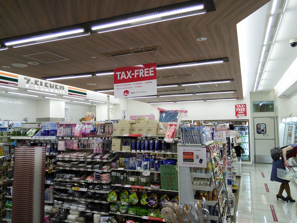 品揃えはふつうのコンビニと同じですが、中国人観光客向けのお土産物が店頭に目立つように置いてありました。