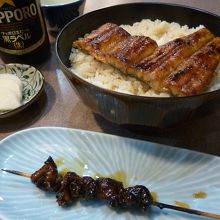 出張先でとんかつやラーメン以外で、と鰻丼を夕食にしてみました。老舗のようで地元客がテイクアウトに並んでいます。鰻丼の「松」とビールで。10分ほどで出てきます。味は甘辛が強めで、タレも多め。メニューにタレの増減も注文できるとありました。ただ昨今の社会状況のためでしょうけど、1段目のうなぎが不自然にハーフカットになっているのはテンション下がります・・・。