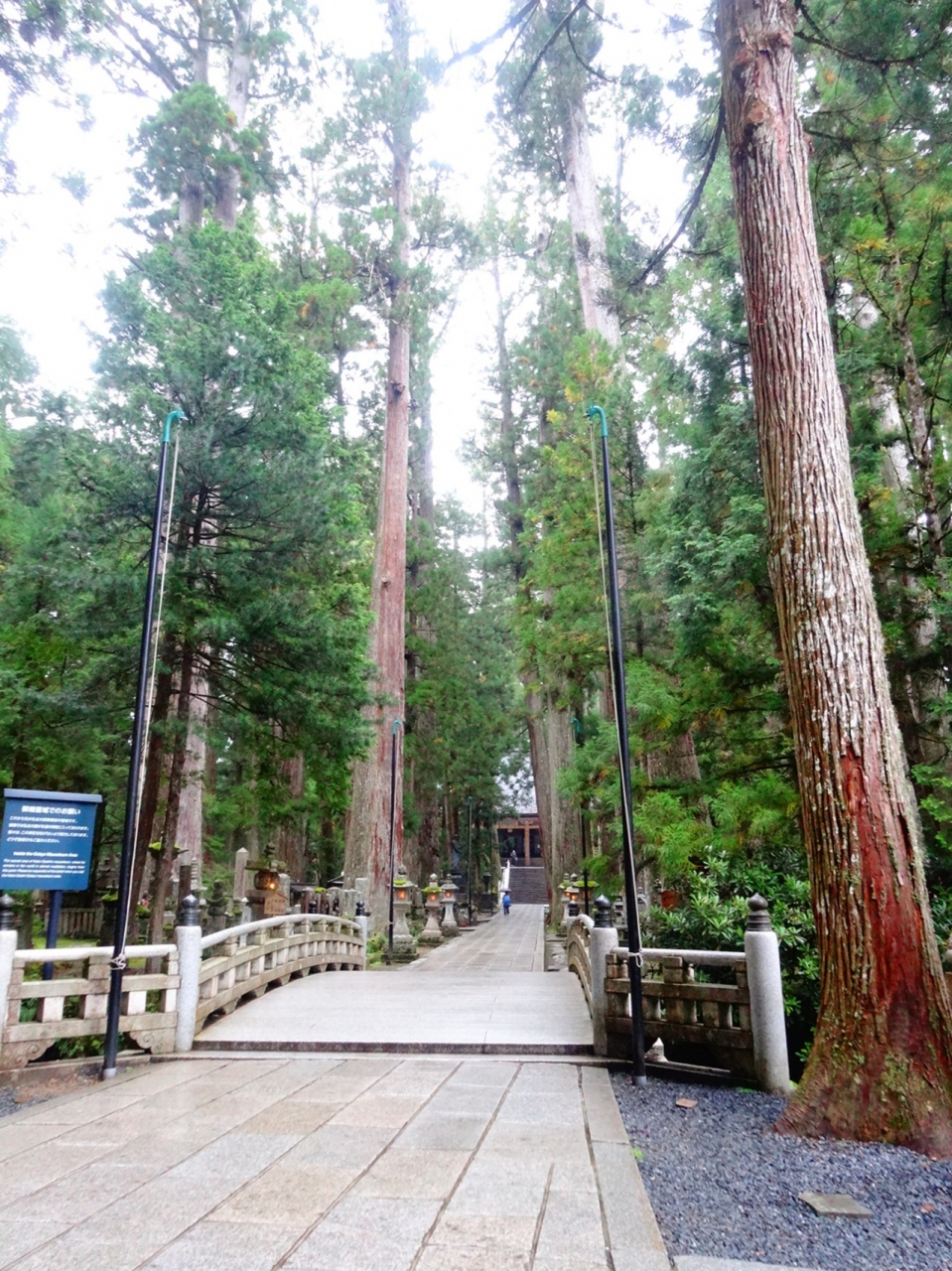 大師御廟へと続く御廟橋。ここから先は撮影禁止、帽子も脱がなければなりません。なぜなら今でも空海は御廟橋で救いの手を差し伸べるために瞑想していると考えられていて、空海に捧げる食事を1日2回運ばれています。かなり神秘に包まれています。