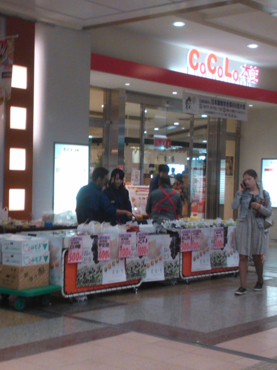 CoCoLo本館前で新潟県産の果物が売られていました。
