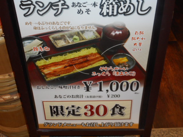 老舗の穴子料理店で、日本橋の路地に本店がありますが、コレドにも出店があり、ランチ時には、限定で30食の穴子箱めしをリーズナブルに食べられますので、早めに並んで順番を待ちます。柔らかく、とろっとして美味しく、人気店です。