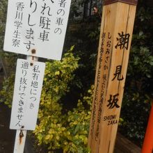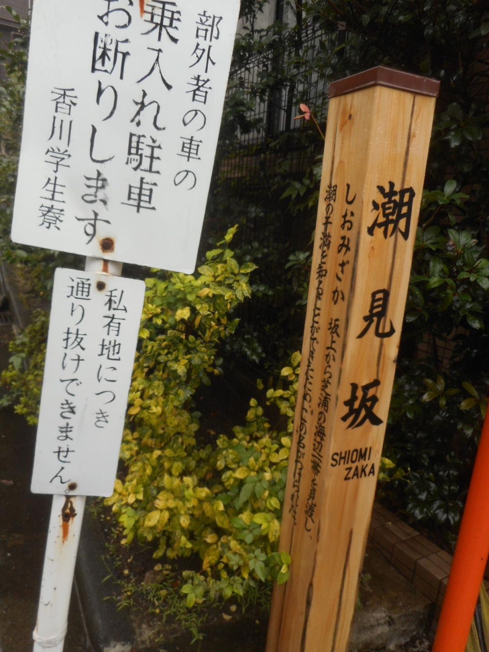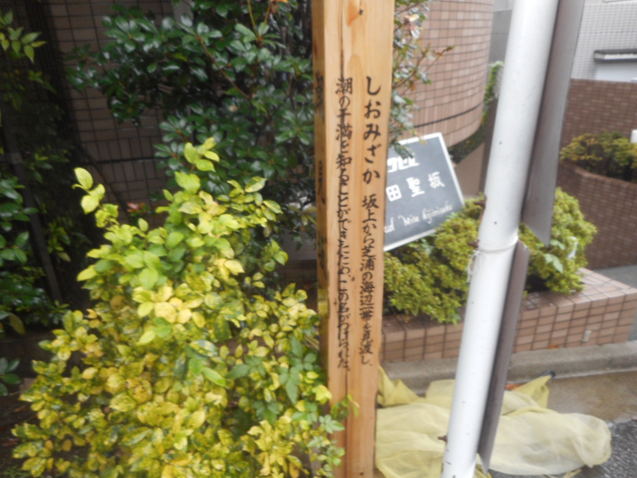 名前の由来は、坂上から芝浦の海辺一帯を見渡し海の干満を知ることができた とありますが、現在は埋め立ても進み坂上から海は全く見えませんでした。