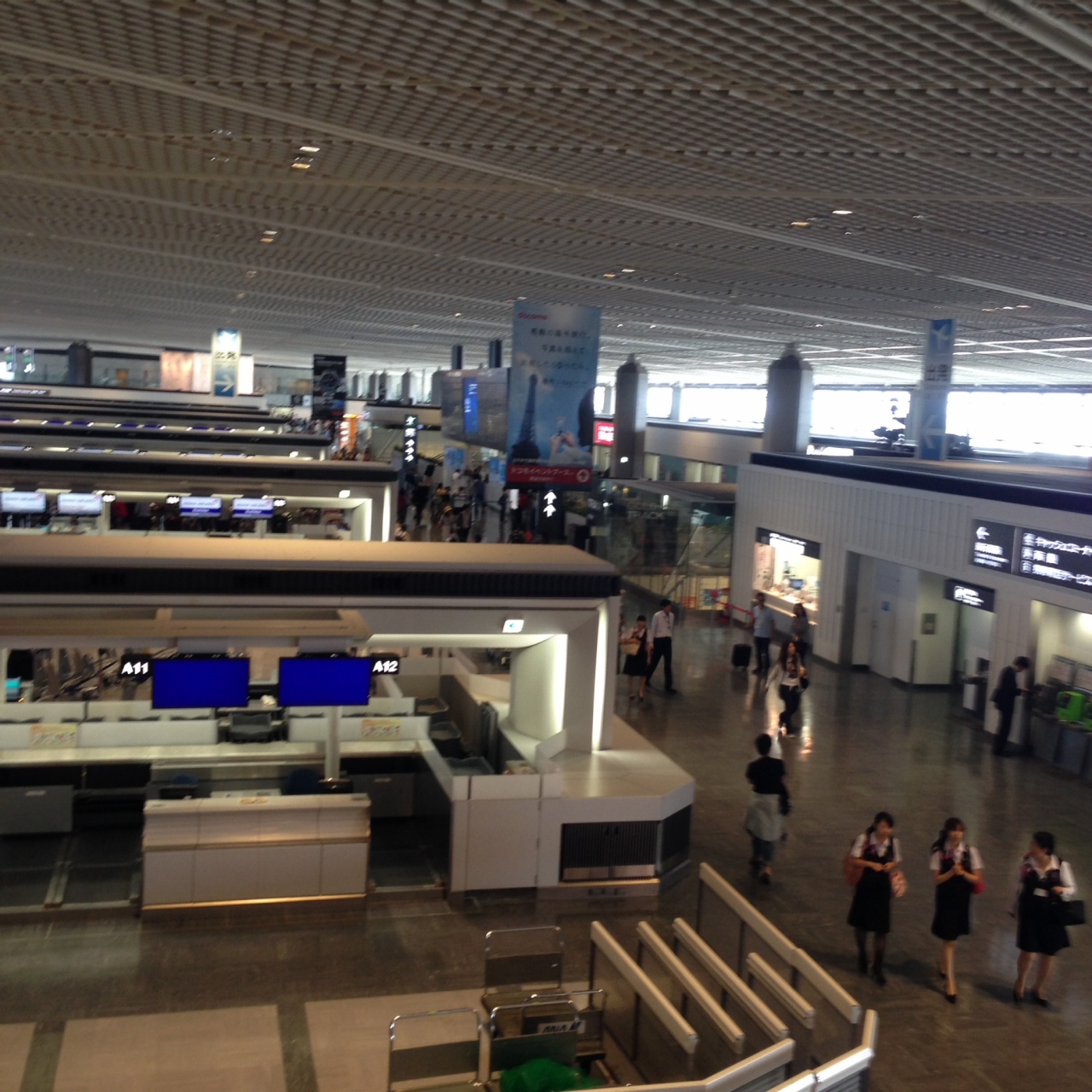 第3ターミナルから第1ターミナルに来たので、やはり第1ターミナルは大きいなぁという印象です。数十社の飛行機が乗り入れていて便数も多いので外国のお客様も多いです。その昔は新東京国際空港と呼ばれていましたね。今年の3月にやっとセキュリティチェックも無くなりました。良かったです。