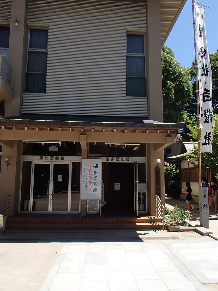 山笠の飾りの展示で外国人観光客でにぎわう櫛田神社の境内にございました。