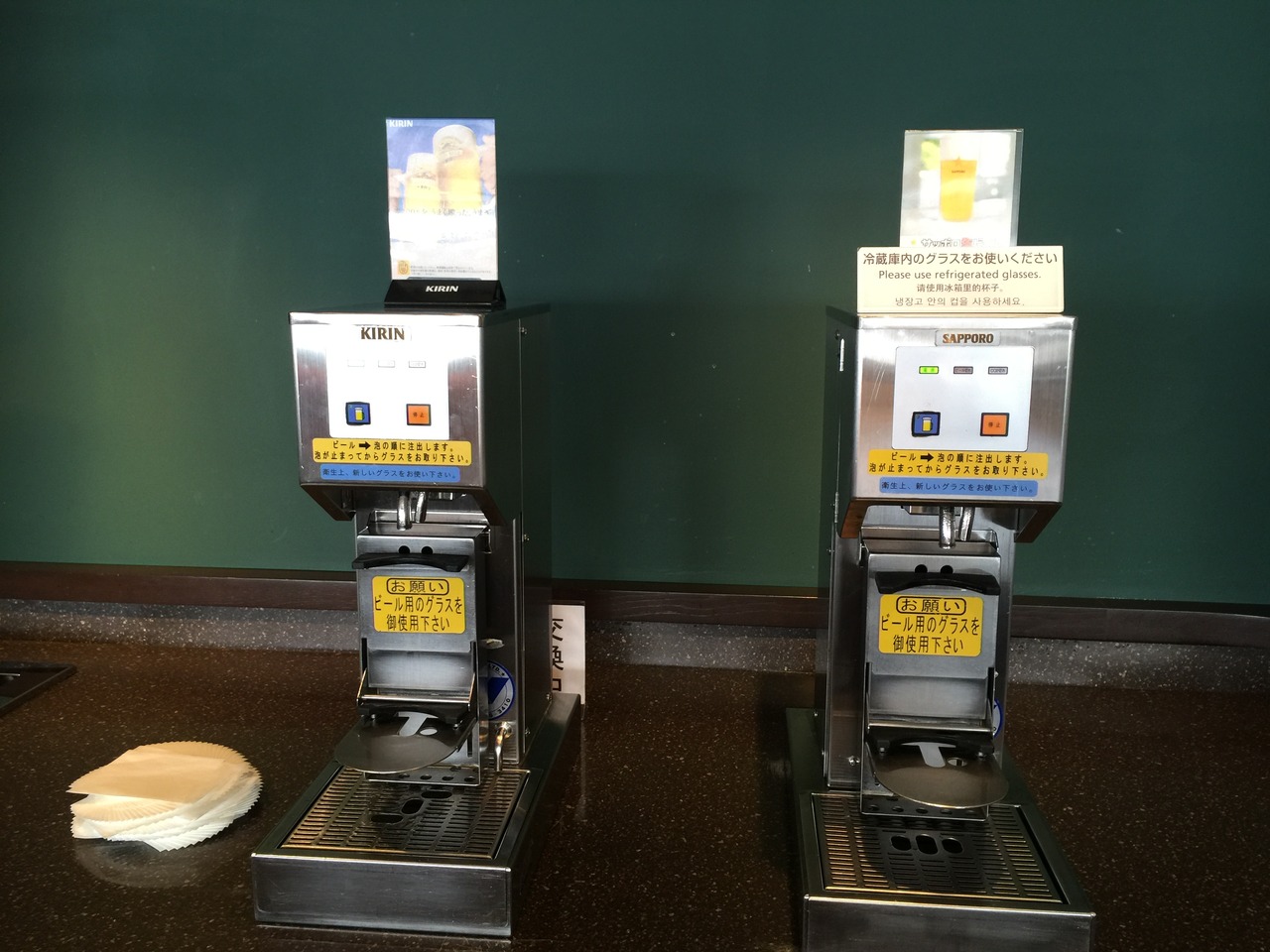 ラウンジはとても広く、ビールが飲み放題でおつまみもある。持ち込みも可らしい。是非また利用したいラウンジだ。