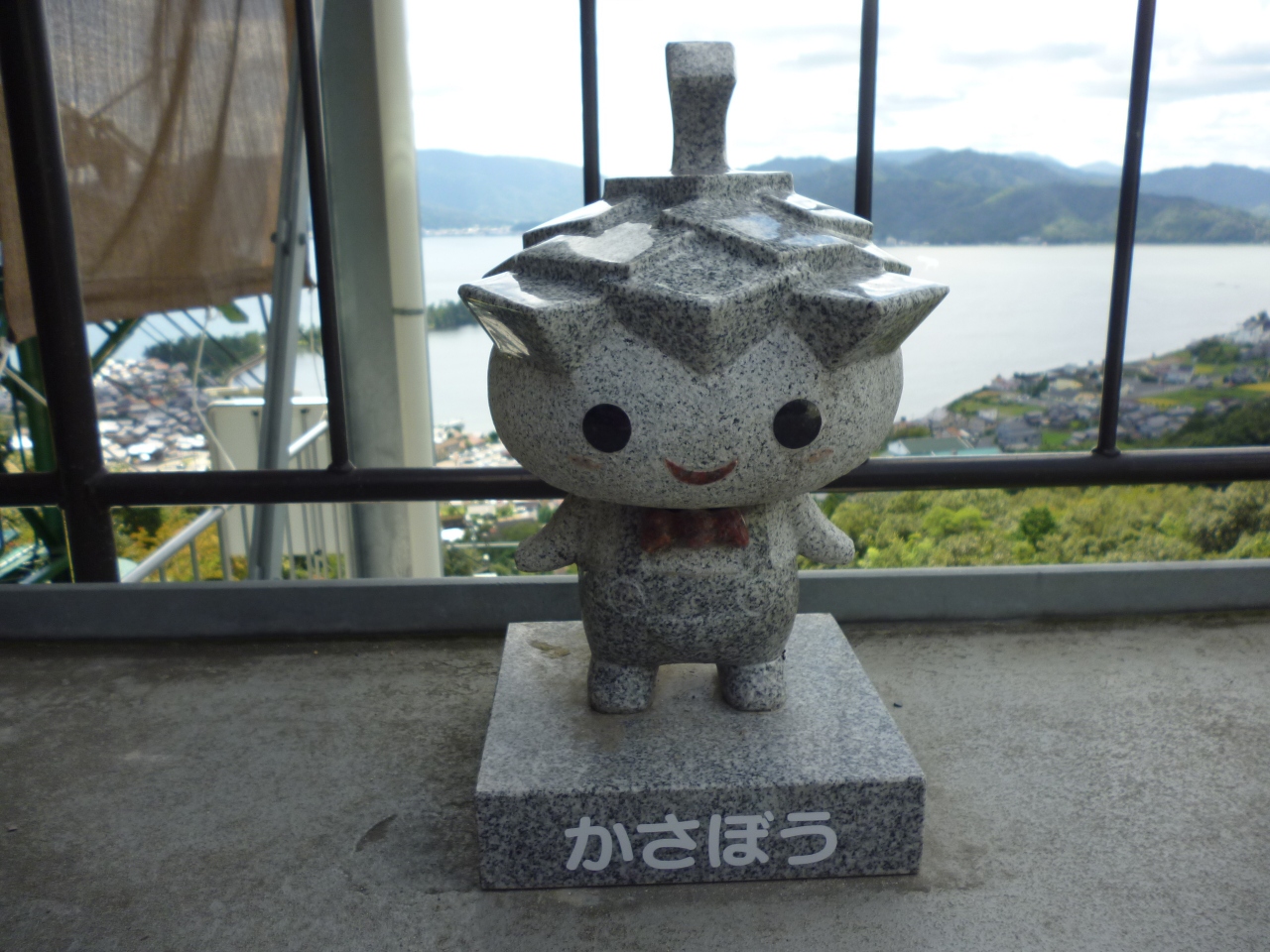 天橋立をレンタサイクルで渡って、傘松公園にリフトで登りました。今回も天気に恵まれて、斜め一文字の天橋立をきれいに見ることができました。リフトをおりると「かさぼう」がお出迎えしてくれていました。レストランが新しくなっていました。