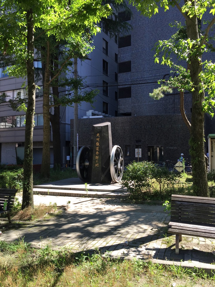 承天寺通りの出来町公園の隅に建つ記念碑でございます。