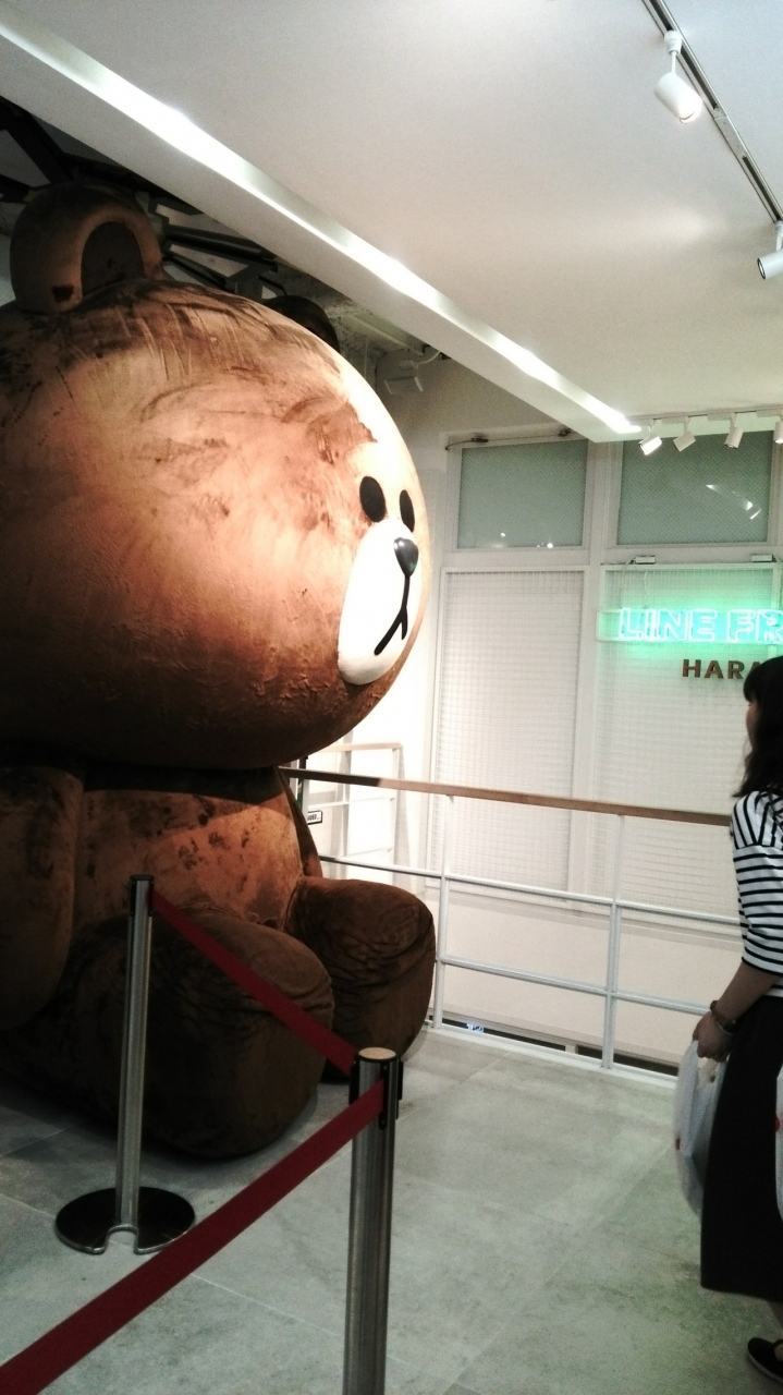 入口やお会計のところに巨大なキャラクターのぬいぐるみがいて、一緒に撮影をするために並んでいました。