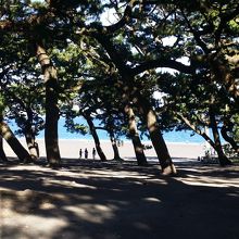 海に行くまでの松林からのぞく青い海が素敵です!