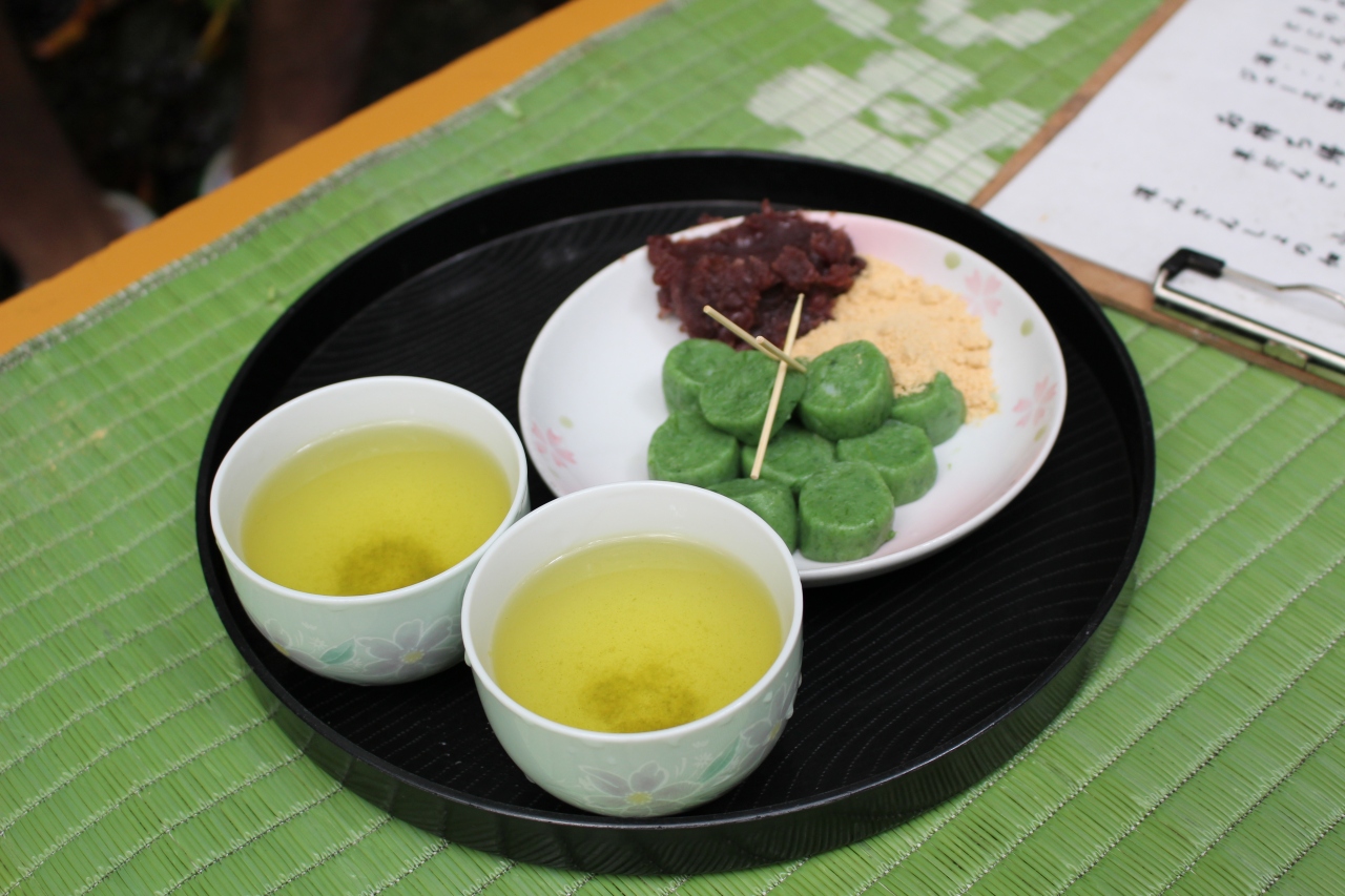 おもしろいロケーションです。渓流の涼しさをかんじながらお団子をいただきます。