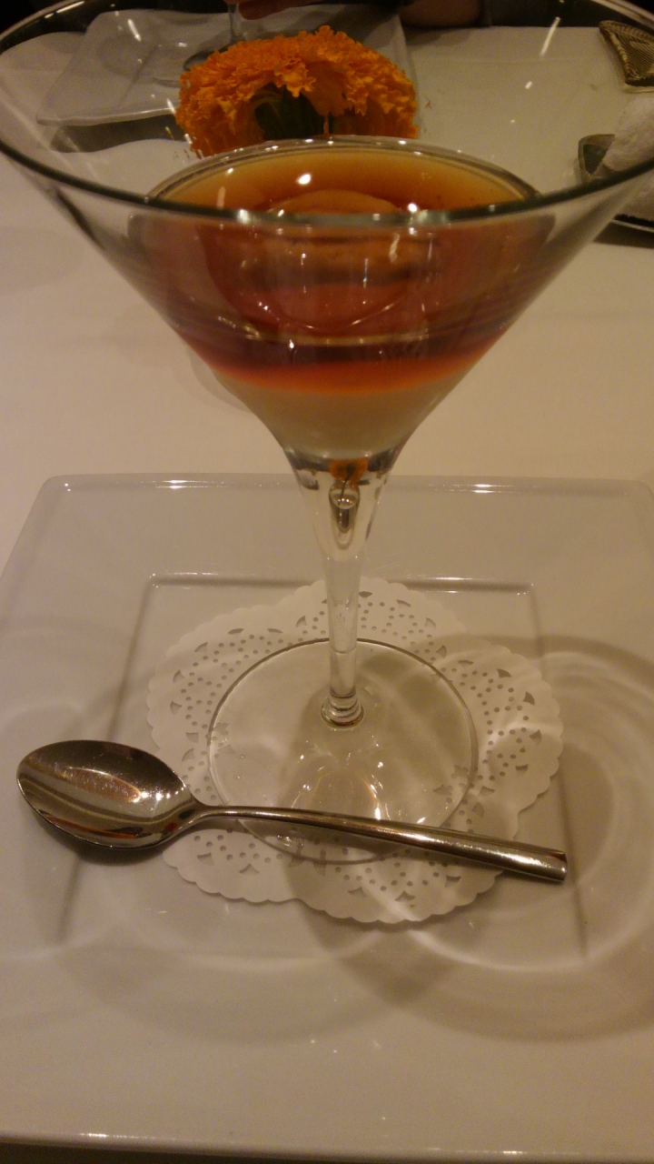 看板メニューの人参のムース。人参の風味も味も全くなく、コンソメの味しかしない…。ウニが乗っていて舌触りは滑らかなので美味しい気にはさせられますが、素材が生かされていなくて完成度の低さが感じられます。