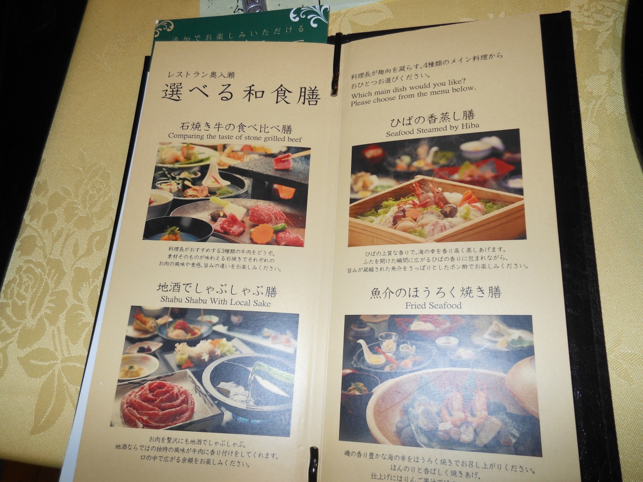 夕食に「料理長が趣向を凝らす選べる和食膳」をチョイスしました。