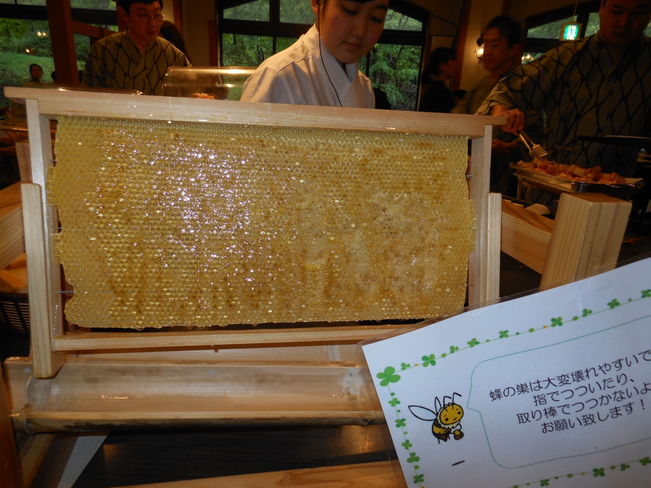 りんごのフレンチトーストは蜂蜜の巣から直接の蜂蜜をかけます。