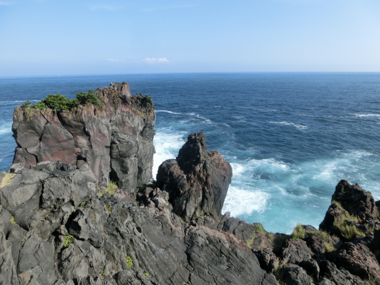 城ヶ崎海岸の岩の先端付近まで、行ってみたのですが眼下を見下ろさすと、足がすくむような怖さで、ここでもし地震が起きたら落ちちゃうだろうなと感じながら立っていました。