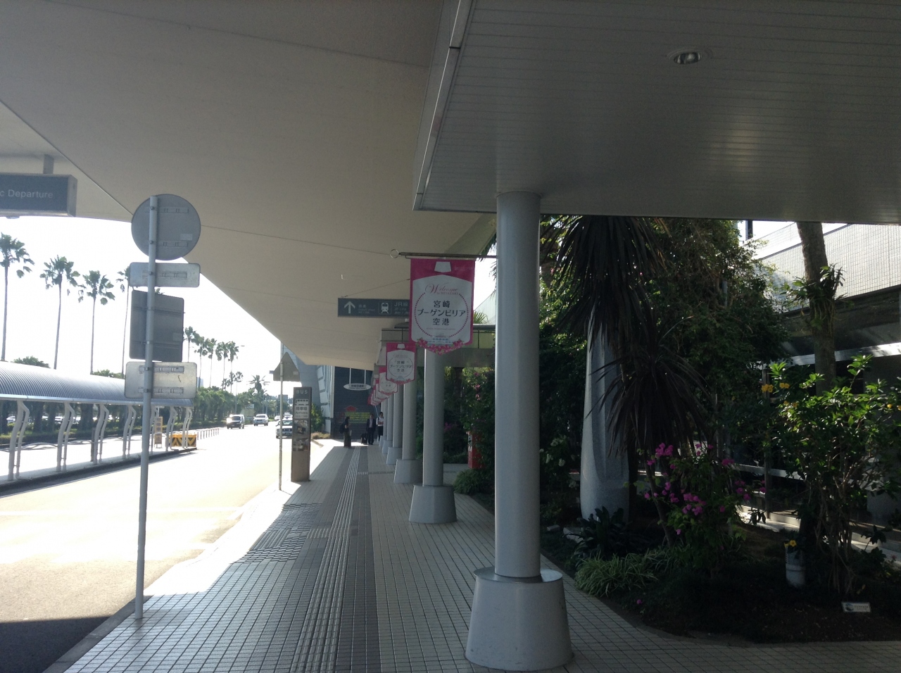 宮崎空港は鉄道駅と直結しているのでとても便利です。ただ、本数は限られていますが。バスだと鉄道の2倍以上時間がかかります。空港にはレストランやお土産屋がたくさんあるので、ここで買うと荷物を持ち歩いて空港に向かわなくてもいいので便利です。トイレの男女の表示がサーファーなのが面白いです。