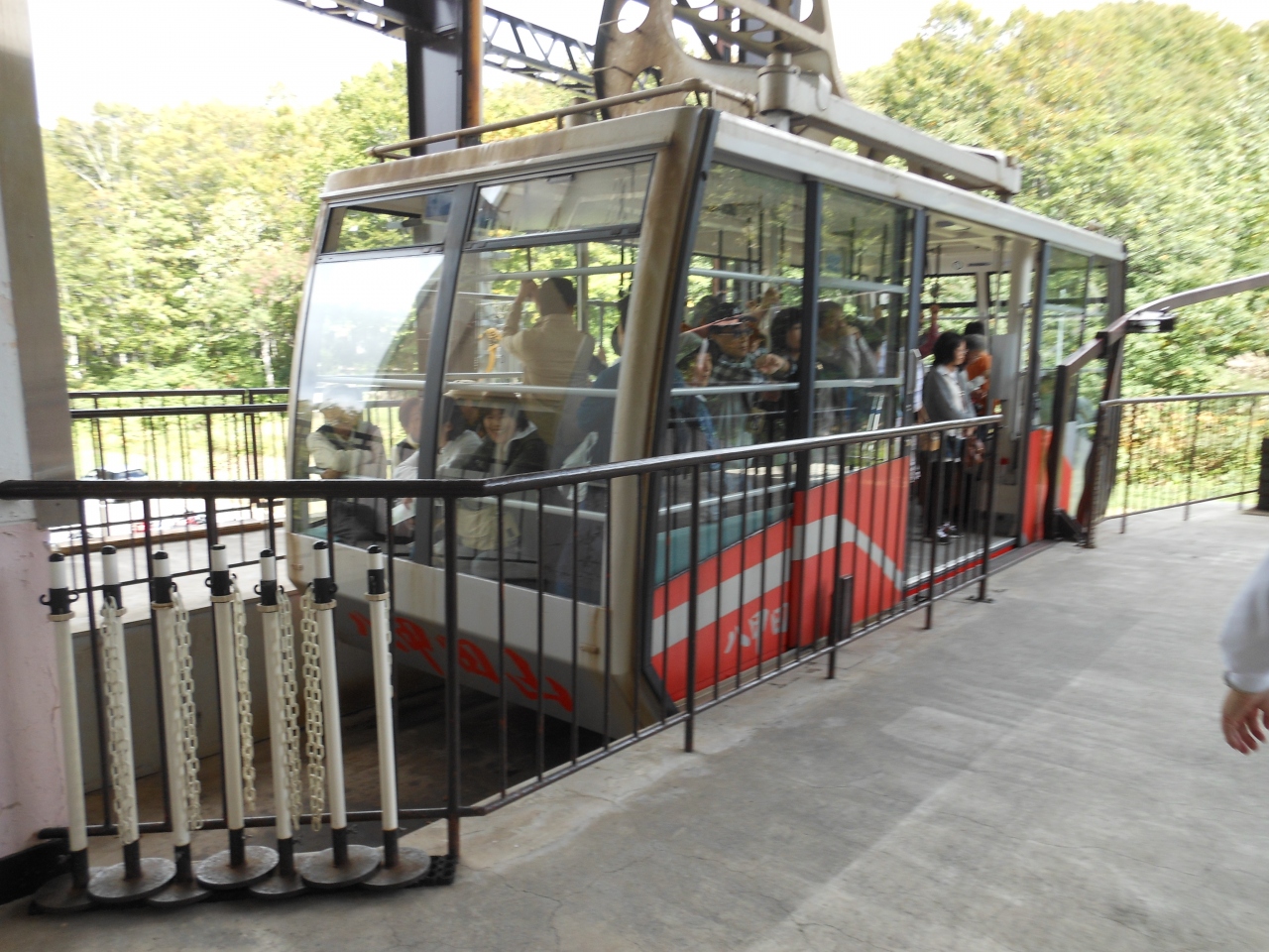 ロープウェー乗り場から中腹までは晴れていてポツポツ紅葉が始まっていました。
