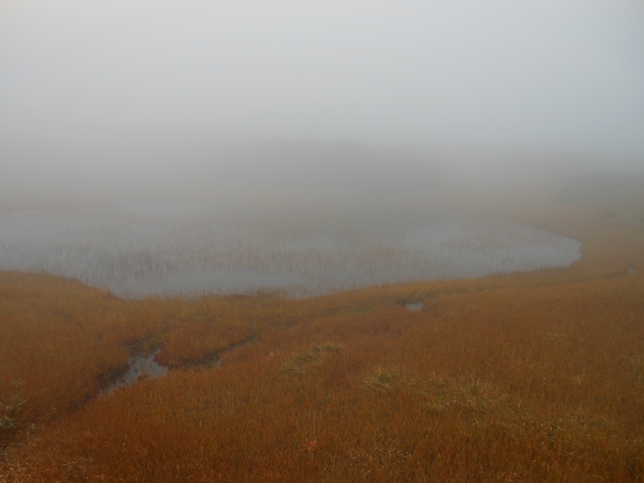 山頂はさぞ綺麗だろうと降り立つとガスで何も見えません。