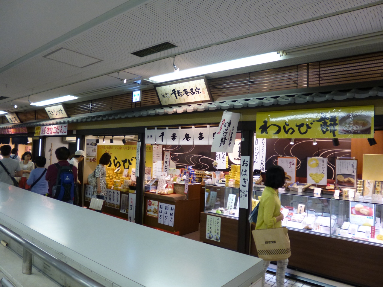 近鉄奈良駅には、改札脇のコンコースに土産店が並んでいますが、そのひとつに「千壽庵吉宗」があります。おはぎやわらび餅と言った日持ちのしない品が有名なお店なので、特急に乗る前に少しだけ買って、車内でいただきました。