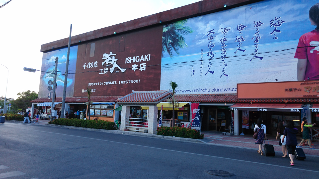 石垣港の離島ターミナルをでてちょうど目の前にあります。沖縄では有名なTシャツのお店で海人のロゴで有名ですが海人以外にもたくさんのTシャツがおいてあり、おみやげとして買うのにとても種類豊富で悩んでしまいました。