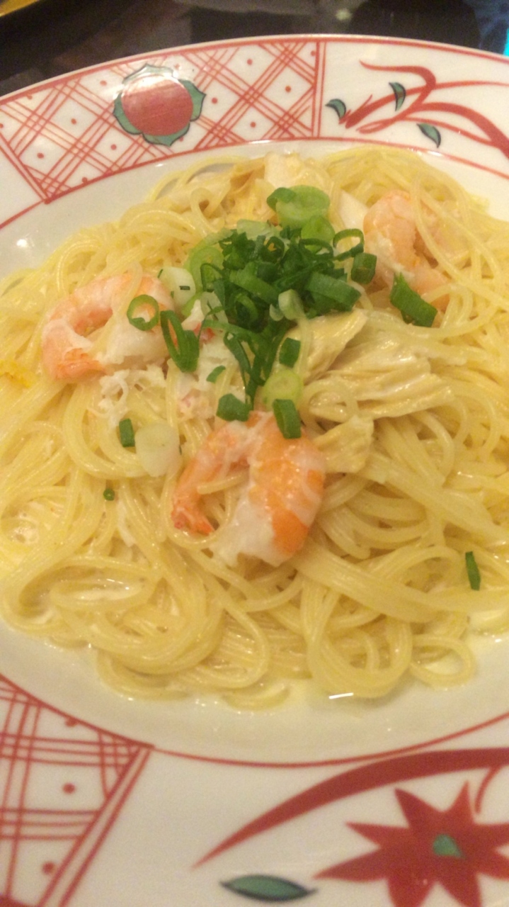 ハルカスダイニングにあるパスタ屋さんです。五右衛門風のお箸で食べる和風創作パスタの感じです。湯葉クリームパスタをチョイス。ソースが少なかったので絡みにくいのが残念ですし、味もそこそこでした。メニューは豊富で選ぶのが楽しかったです。