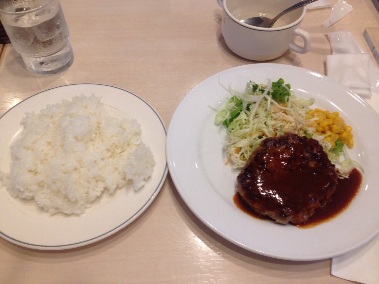 ランパスのメニューは、ハンバーグ定食。ハンバーグとライスとスープのセットです。