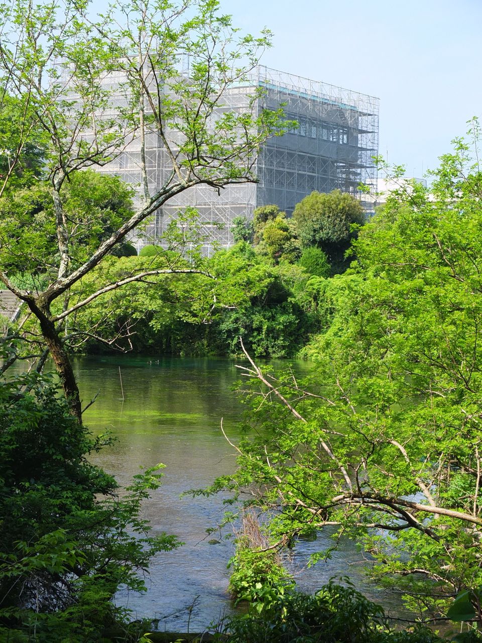 国道1号線の直下から湧き出し、100m近い川幅の大河になって、たった1.2kmで狩野川に合流しておしま、という日本一短い1級河川です。ほぼ全量が湧水なのでとてもきれいでです。