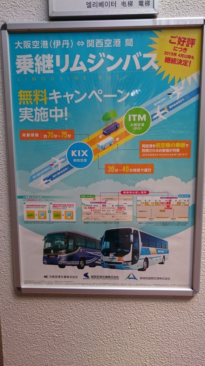 関空からの国際線は、羽田や成田発着に比べてチケットが取りやすい(残っている)事が多く、東京在住の私も年数回利用するのですが、問題は国内線の路線、便数が少ないこと。そこで伊丹空港を利用することになるのですが、南海またはJRと地下鉄を乗り継ぐのは面倒だし、リムジンバスも高い(片道1950円、往復3500円)。こうした乗客の要望を受けて、国土交通省が調査を目的にスマートしたのが、「大阪空港=関西空港線リムジンバス乗継無料キャンペーン」です。関空発着、伊丹発着の便を当日もしくは翌日に利用する場合、乗車前にEチケットや搭乗券などを示すと、関西空港~伊丹空港までの無料のバスチケットがもらえます。大阪市内でたまに渋滞にはまるというリスクは若干ありますが、荷物も預け入れでき、乗り換えもなく、全員着席なので快適です。このキャンペーンは、2015年3月末で終了予定でしたが、好評につき2016年3月末まで延長されました。国土交通省さん、すばらしいキャンペーンありがとうございます。是非とも、このキャンペーン、続けてください!