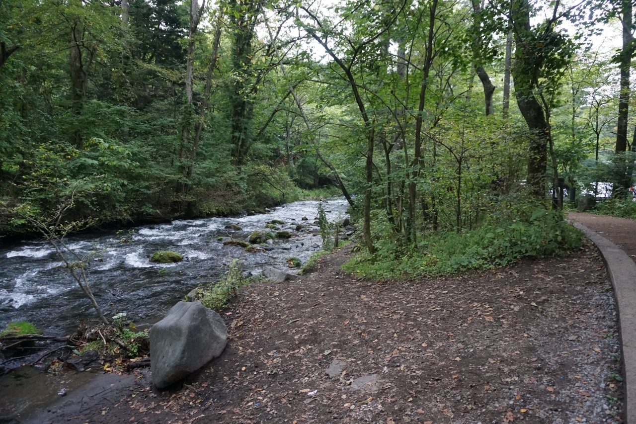 シルバーウイーク、中軽井沢にあるハルニレテラスに行きました。ここは人気らしく、朝から駐車場へ車を停めるのが大変でした。中庭を挟んでお店が両側にあり、板張りで歩き易かったです。カフェやレストランはどこも混んでいたようです。川沿いに遊歩道があり、涼しげでした。ワンちゃんを連れた方も多かったです。