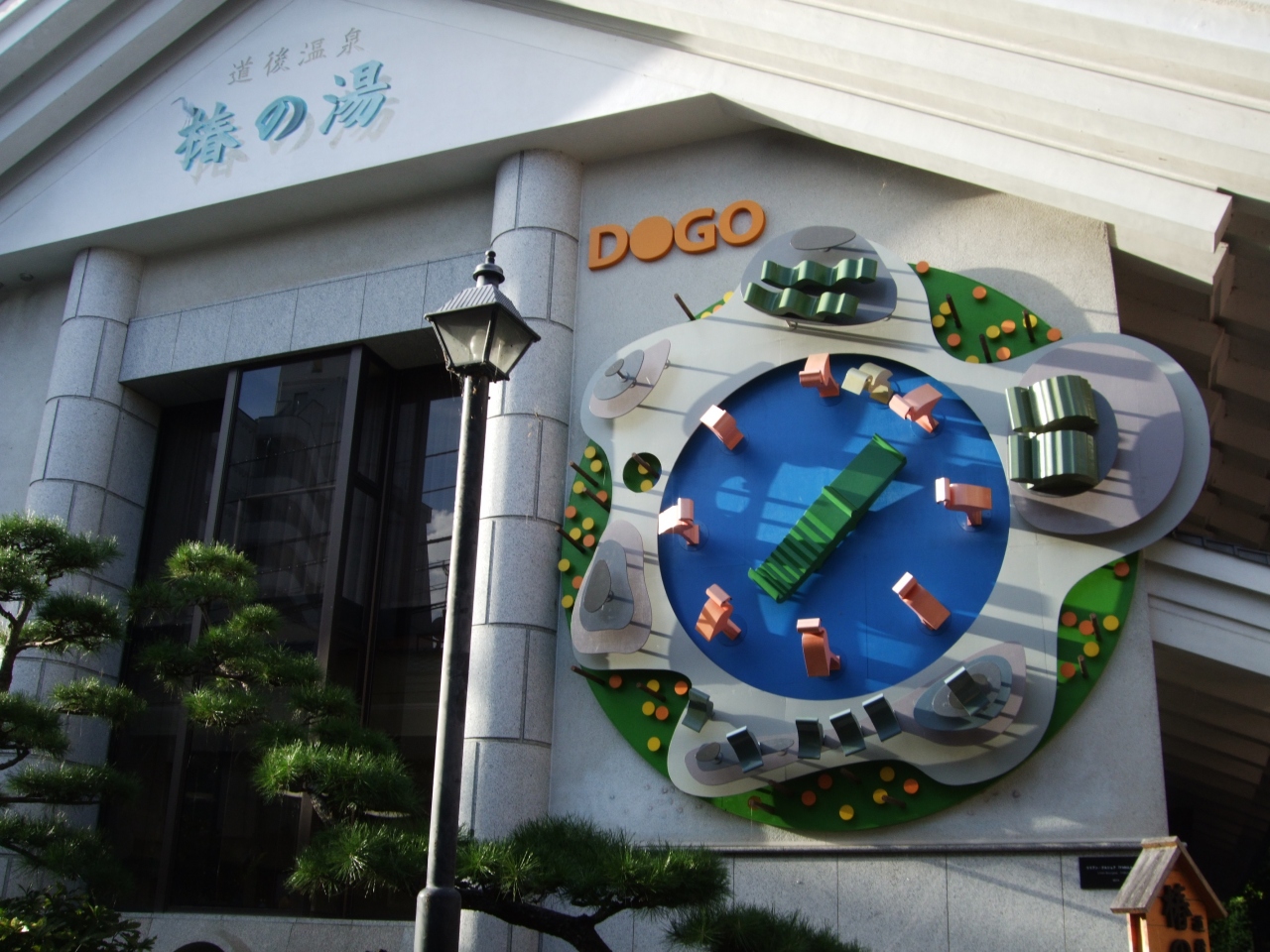 温泉駅からハイカラ通りを通って途中で右に折れて道後温泉本館に向かいますが、その途中で折れる地点のコンビニの向かいにあります。