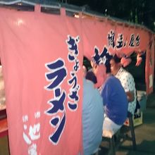 ディナーの締めに訪れた、公園の前にある屋台。ホークスファンが多く来店するお店とのことだが