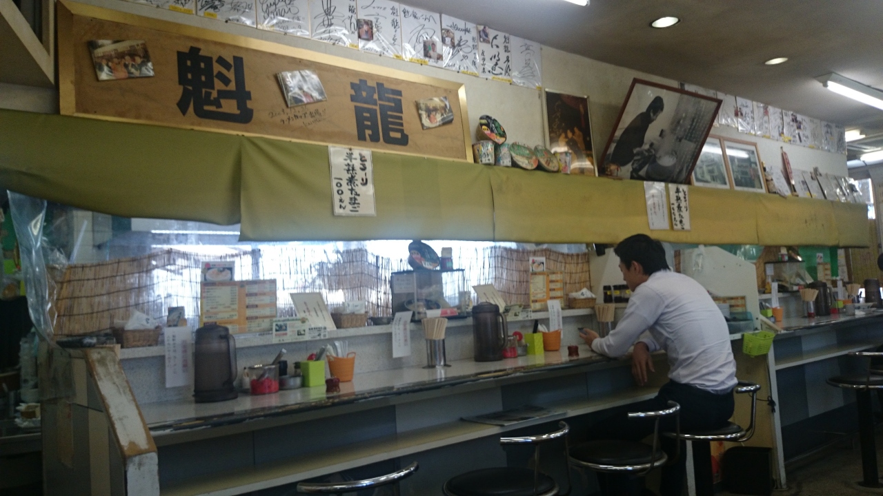 博多訪問の際に魁龍のどとんこつラーメンを食べた。店内には芸能人のサインがびっしり。