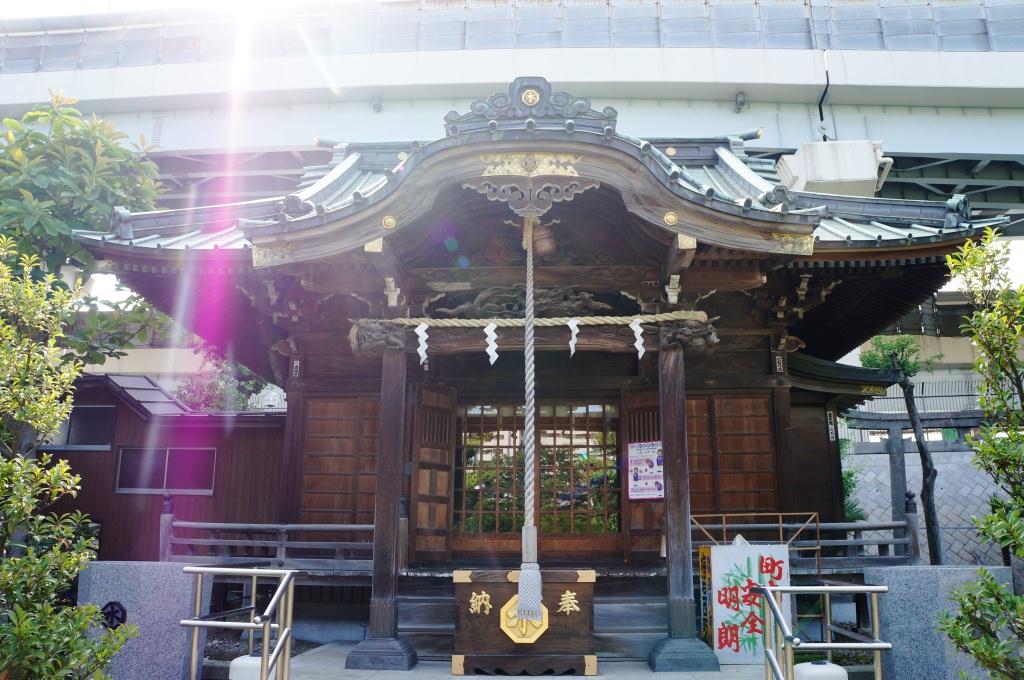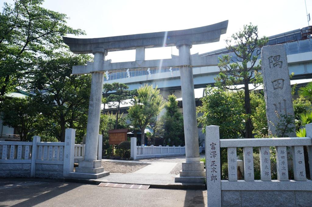 都高速向島線の下、堤通と東白髭公園の間にある神社です。規模は小さいですが昔から隅田川を守る神社としてあり、水神社,浮島神社とも呼ばれ地元を守っています。桜の季節には隅田公園とともに界隈では見応えのあるスポットになります。
