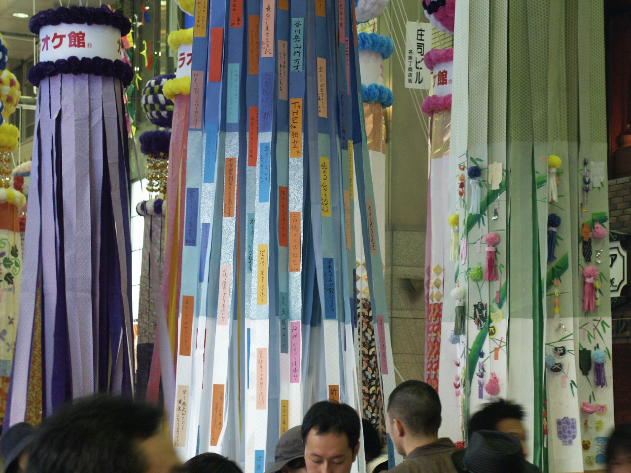仙台駅に着くと、駅に大きな短冊があるのにびっくり。何本もあって、これがかの有名な仙台の七夕かと思ったら、七夕の短冊はそこから始まっただけでした。外に出ると、アーケード街がすぐに続いていて、竹の短冊が何百本、いや千本単位でしょうか、連なるのです。一度見て損はないです。