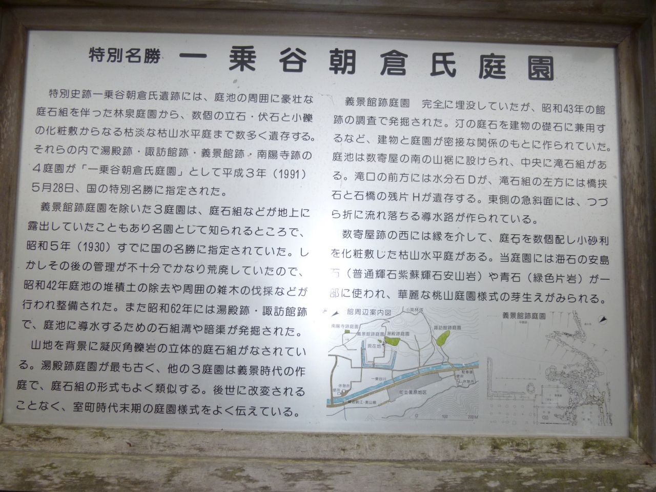 その殿舎の背後に有ったのが朝倉館跡庭園と呼ばれて今私たちが目にすることが出来る豪快な石組みの庭園跡です。