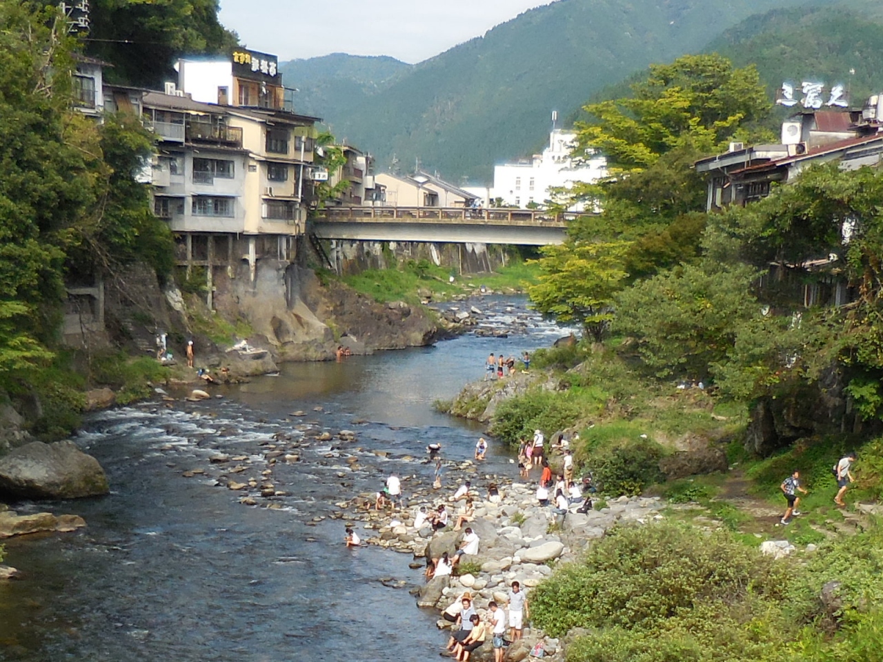 長良川の支流、吉田川に架かる橋で、郡上八幡旧庁舎記念館のすぐ近くにあります。水面までの高さは12mですが、地元の子供たちが橋の上から川に飛び込むことで有名です。新橋のすぐ下流に架かる宮ヶ瀬橋から吉田川に架かる橋がよく見えて橋の高さが実感できます。