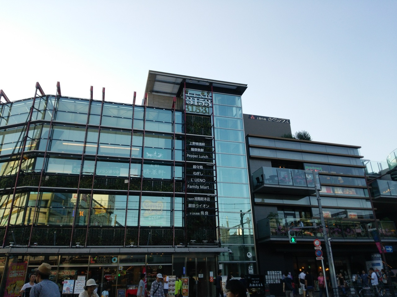 JR上野駅(広小路口)を出て上野恩賜公園に向かい、信号を渡ったところにあるガラス張りの比較的新しいビルです。上野精養軒、叙々苑、銀座ライオンなどの飲食店やコンビニなどが入店している施設ですが、上野駅や上野公園からも近いためか、どの店も混んでいました。