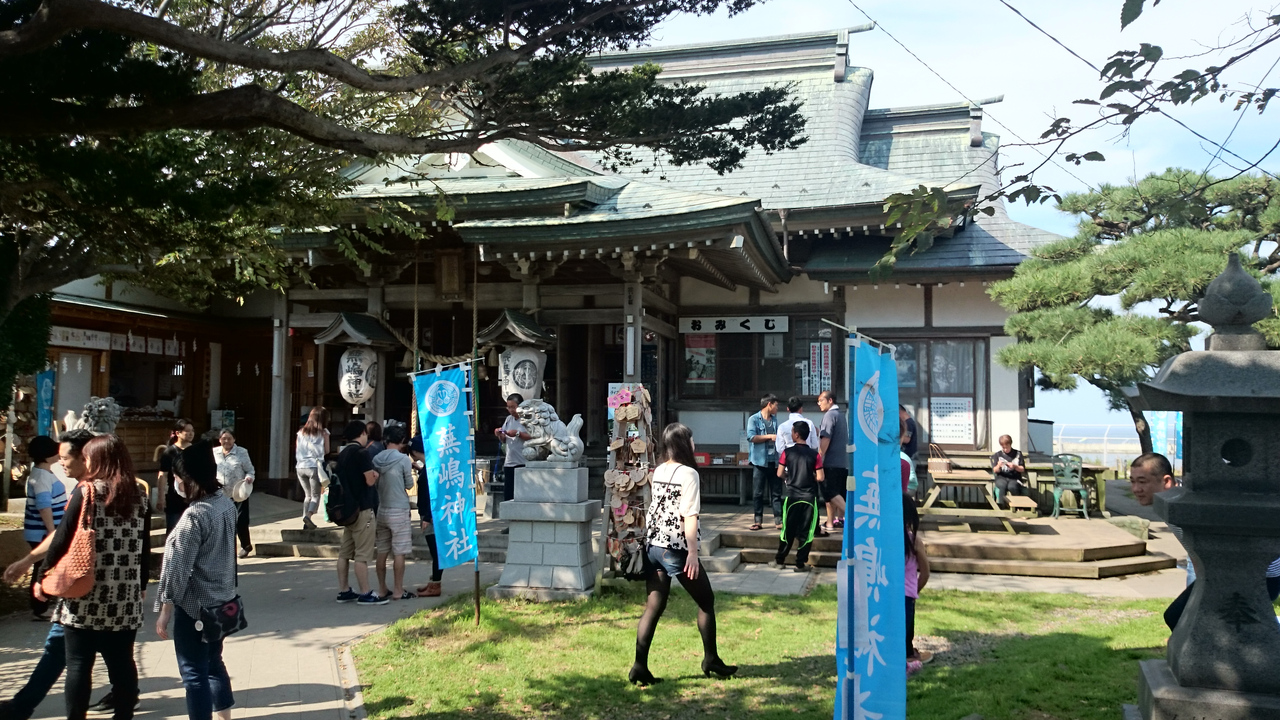 神社の下にはちょっとした砂浜があり、並みと戯れている人が結構いました。