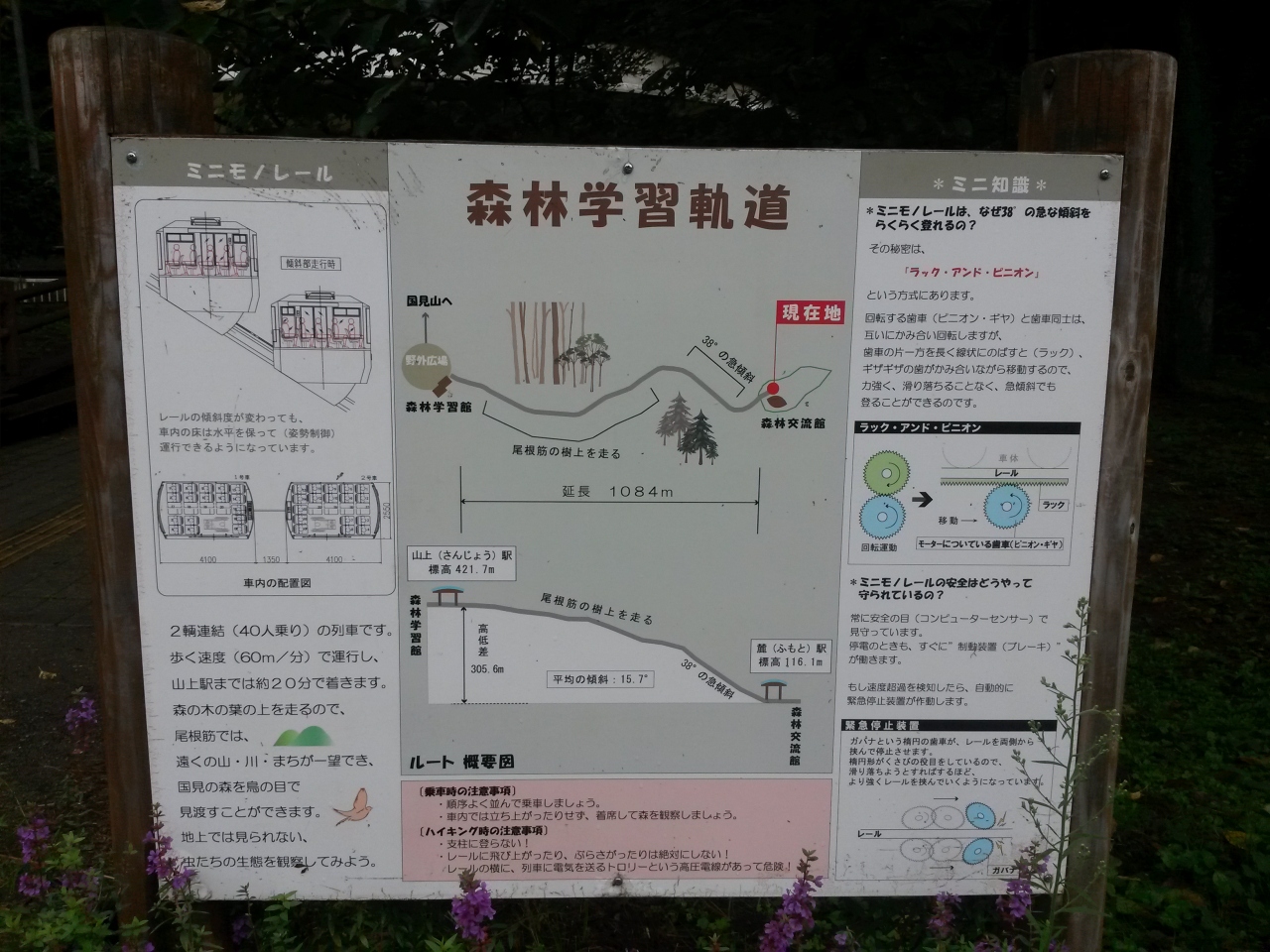 学習軌道は職員のガイド案内付きで高低差300m程をグイグイ登ってゆきます。