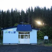 目の前を少し行くと国道39号線があって、網走~女満別空港・美幌のバスの「呼人駅前」バス停が左側にあります。
