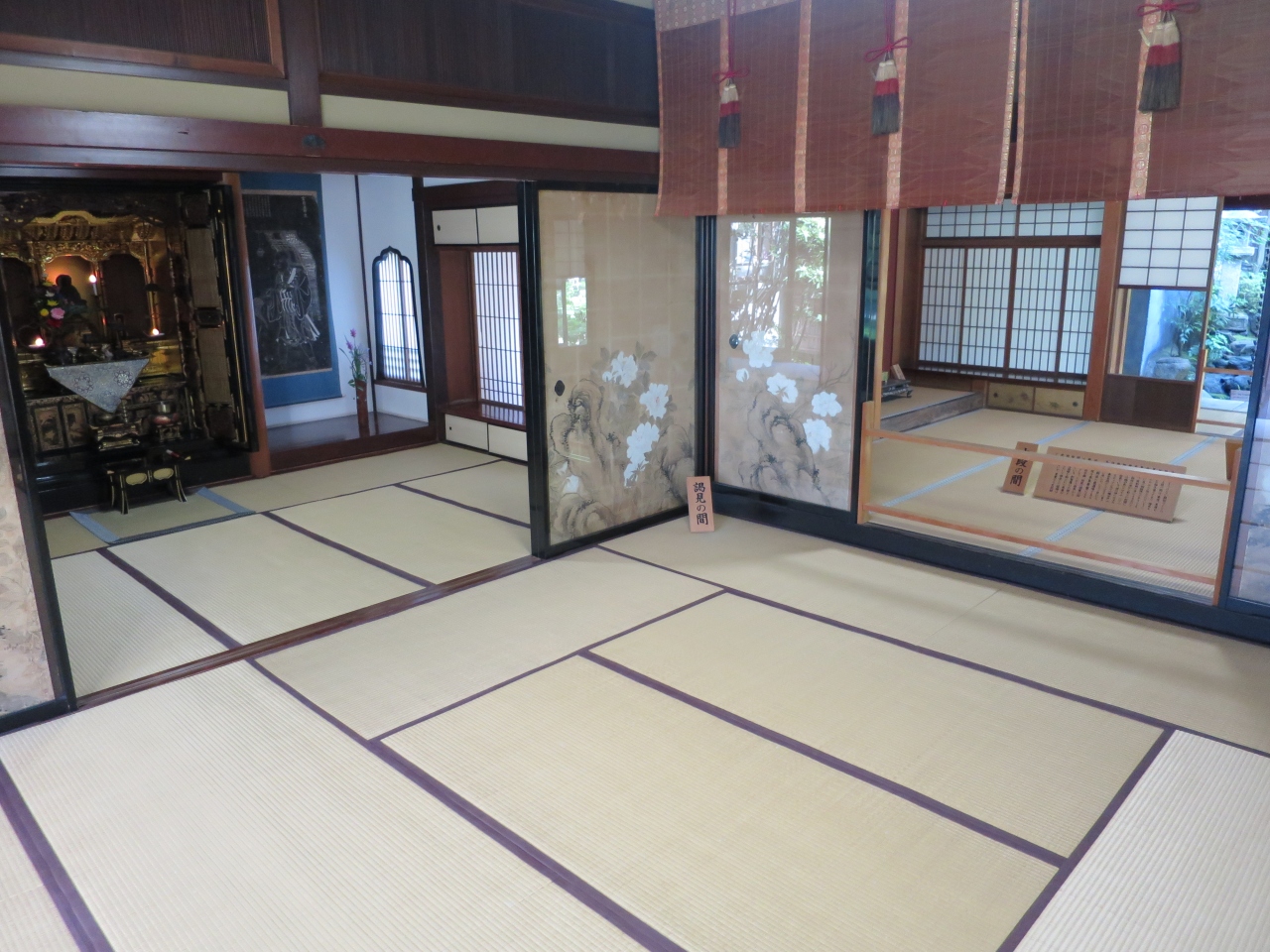 この武家屋敷の庭園に面した縁側は、JR西日本の北陸新幹線開業のCMで杏ちゃんが着物を着て腰掛けて庭を眺めるシーンが撮影された場所です。野村家の入口にはCM撮影の写真がありました。言われないと気付かないですね。