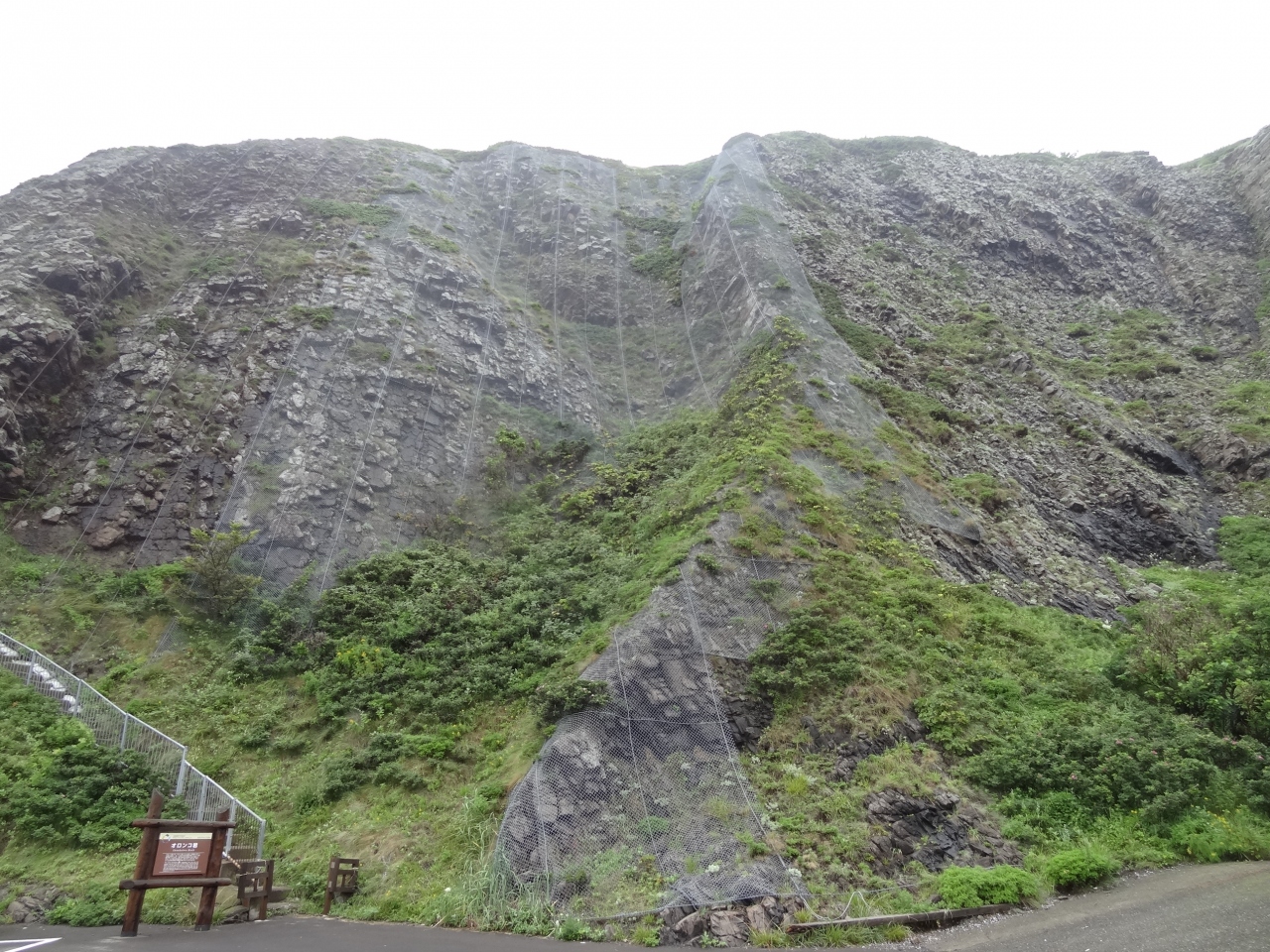 オロンコ岩は別名ゴジラ岩とも言われている。海側から見ると、そのように見えるらしいが、岩に登る方からでは全く分からない。とにかく狭くて急で細い階段を登る。ちょっと覚悟して登るべし。やっと登れば、ウトロの町や港、知床連山も見渡せる。結構広い平坦地になっており、海鳥が出迎えてくれる。ただ、トイレは下のバイオトイレで済ませておくこと。