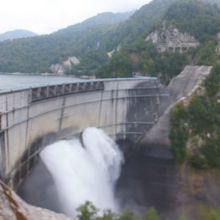 関電トンネルトロリーバスの黒部ダム駅から220段の階段を登って行けます。途中に破砕水の飲み場もあり、子ども連れでもゆっくり登れば大丈夫でしょう。