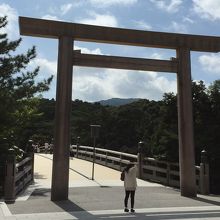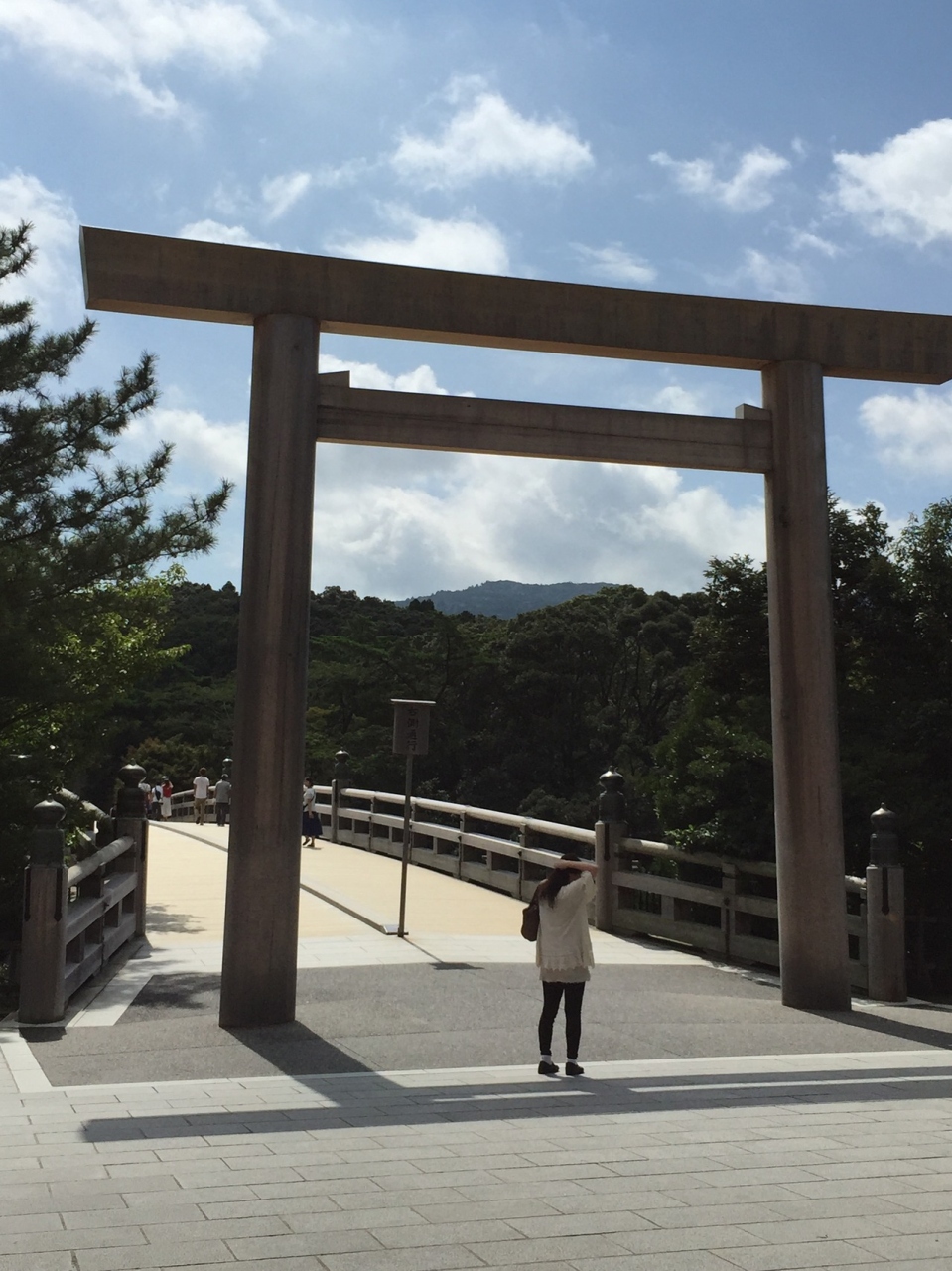 伊勢神宮の内宮への入口、五十鈴川にかかってる俗界と聖界を分かつ橋といわれてます。テレビで伊勢神宮に来ました!という場合にいつも映る定番の場所です。この橋も20年に一度架けかえられるそうですが、遷宮後たった1年で早くもそこそこ古い感じになっちゃってました。